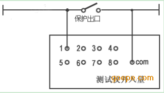 装置共有开关量输入端子8对,开关量输出端子4对。开入量、开出量都由光电隔离器和24V直流继电器组成,其工作电源为独立的24V工作电源,所以在COM端与开入量之间有24V的直流电压。以下是几种常见的开入量的接线示意图: