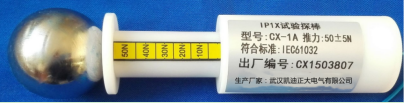 符合IEC61032图1试具A、GB16842试具A、GB4208IP1、IEC60529IP1、IEC60065 等标准要求。用于防止手背触及的防护检验。